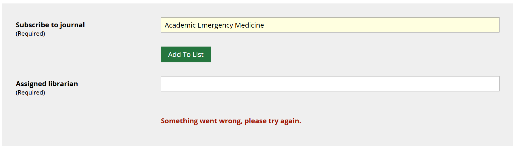 LKS staff can usually receive Journal Alerts. There is currently an issue adding and removing Journal Alerts from staff records, related to a redundant Assigned Librarian field.
