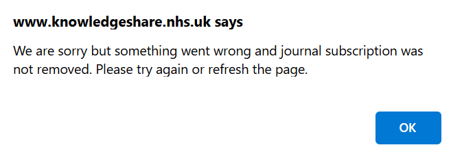 This issue only affects LKS Staff records. You can add and remove journals on Member records as normal. Until this is fixed, consider setting up a dummy Member record with an alternative email address (one you can access) to receive journal alerts for yourself.