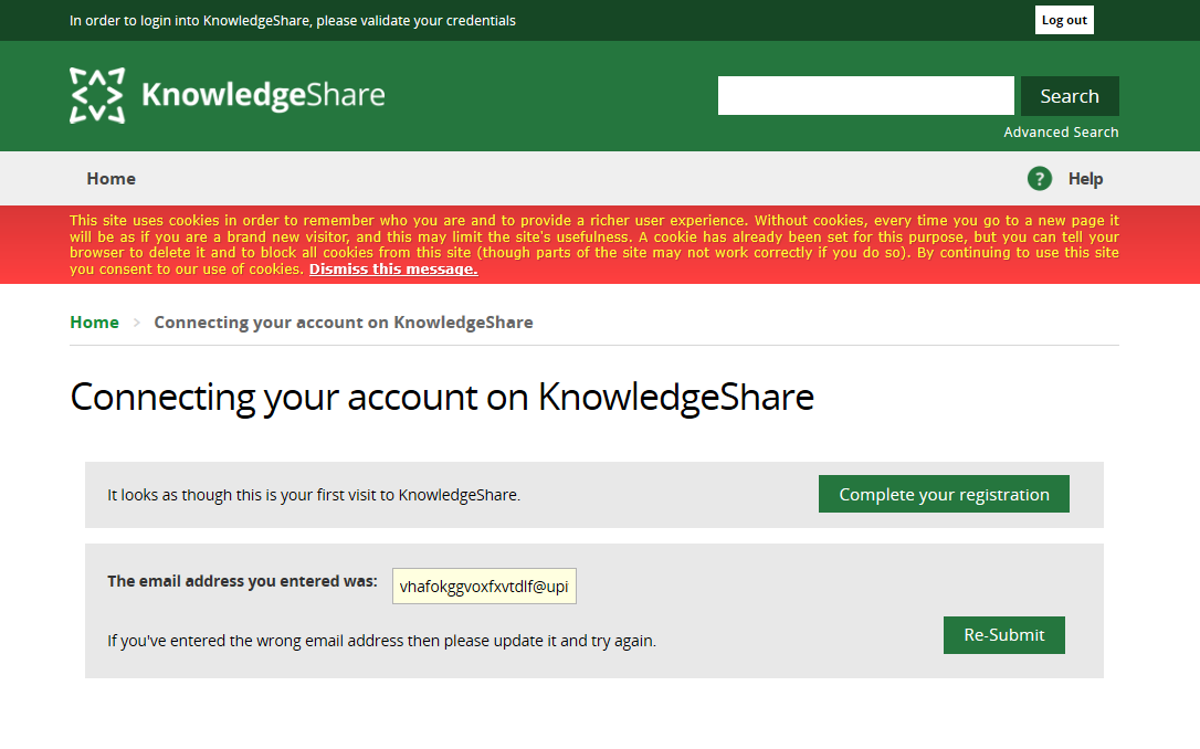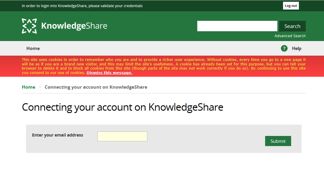3. Member is taken back to KnowledgeShare to enter their email address.