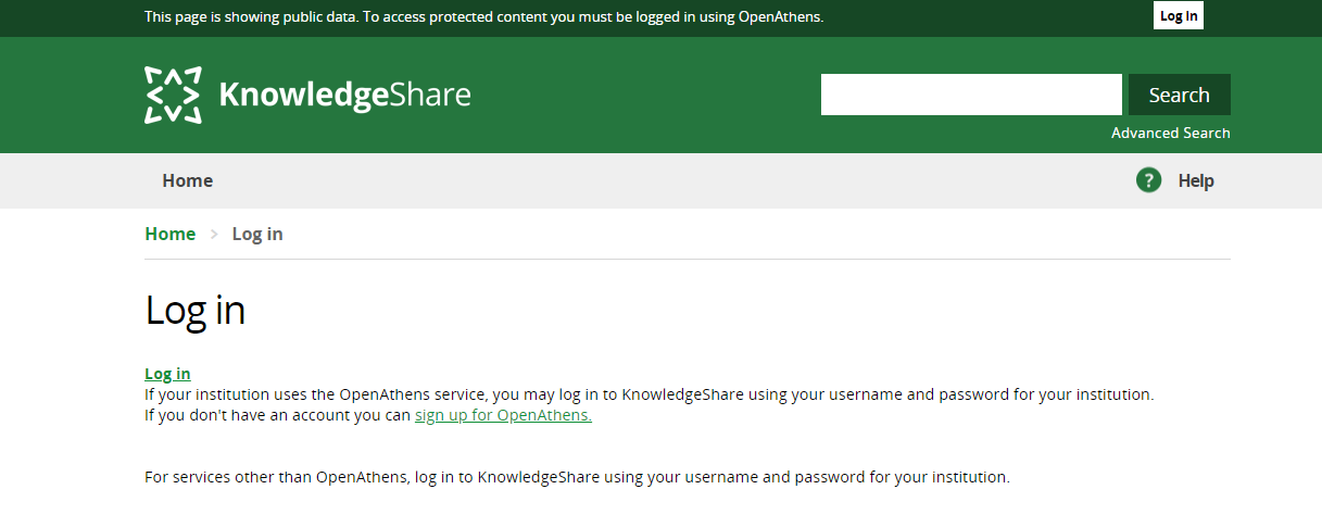 2. Member is given the option to enter their NHS OpenAthens username and password or find their institution.
