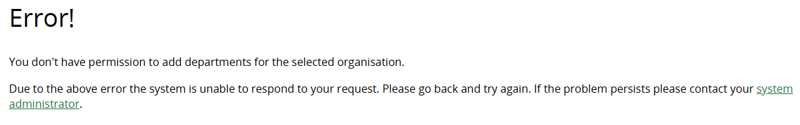 Although the links to add new sites and departments are visible, if you click Add New you will see an error message.