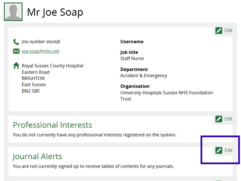 On the Member profile page click on Edit on the Journal Alerts section to add selected journal table of contents (TOCs)