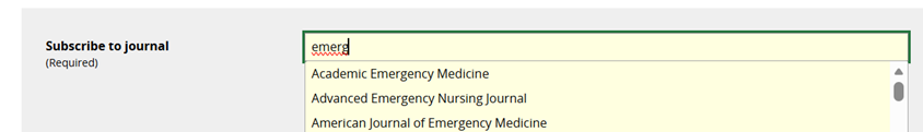 To select journals, click in the field Subscribe to Journal. Those that are already available are listed alphabetically: