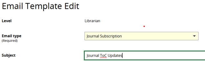 3. From the Email Template List, select Journal Subscription