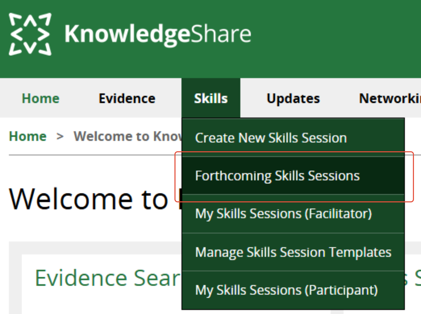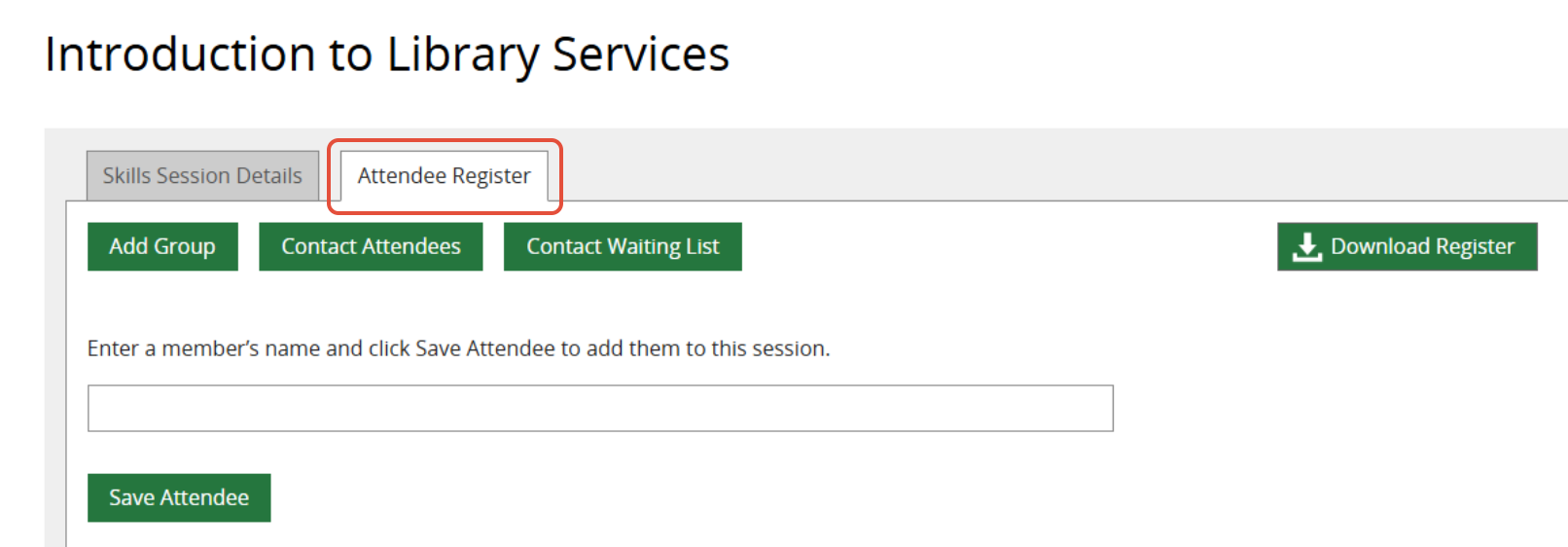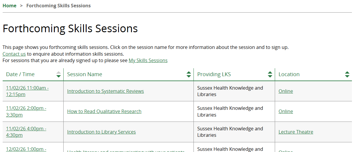 - Find the session via the Forthcoming Skills Sessions page (or via Advanced Search if the session is in the past).