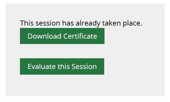 When clicking through to a session name, the attendee can choose to download their certificate and/or evaluate the session.