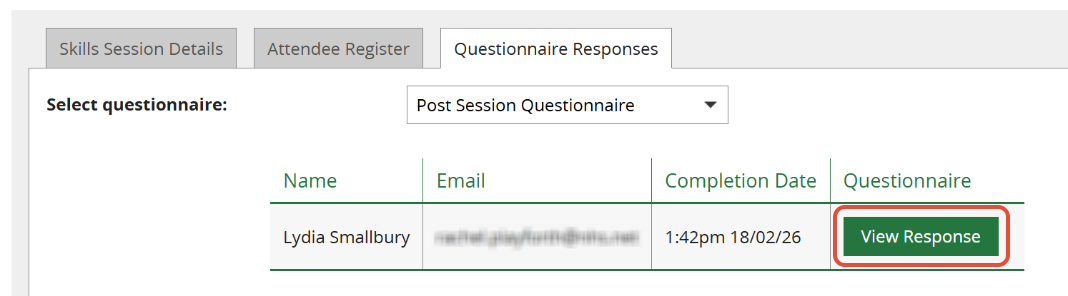 View the Skills Session and click on the Questionnaire Responses tab.