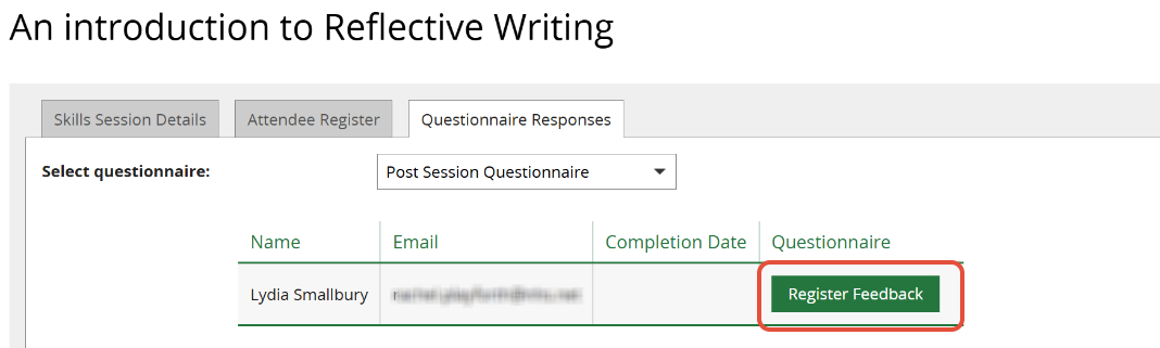 Members can also complete the feedback questionnaires by logging into their KnowledgeShare account. Skills sessions they have attended are listed on their home page.