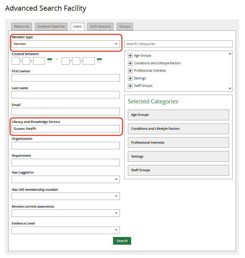 To see all Members registered with your LKS, you will need to use the Advanced Search.